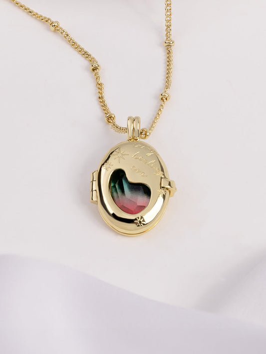 Wanderlust + co - Healing Ombre Fuchsia & Turquoise Gold Locket Necklace